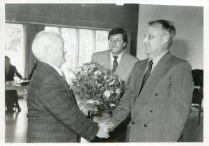 Den wichtigsten Mann sehen wir aber in Bild 2 ( sorgte in meinem Fall auch für eine angemessene Bezahlung ). Das Bild zeigt, wie Steinmeiers Günther von Schlutters Heinz zur Ernennung ( komischerweise erst im 2ten Anlauf...... Entschuldigung - Erinnerungen holen mich gerade ein und ich habe einen leichten Lachanfall...) zum Stadtkämmerer gratuliert. Man möge mir verzeihen, aber für mich sieht Herr Demuth aus, als habe er gerade eine Kröte verschluckt. Das Bild ist einfach zu und zu schön! Aber nun zu Günther, damals noch Bauamt. Das Schwimmbad war sein absolutes Steckenpferd. Für manchen erweckte es durchaus den Eindruck, als wäre es sein persönliches Eigentum. Natürlich hatte er auch seinen persönlichen Schlüssel und den eigenen Spind im Schwimmmeisterraum. Ich glaube, nach seiner Pensionierung, traute sich erst niemand, ihm den Schlüssel wieder abzunehmen.
