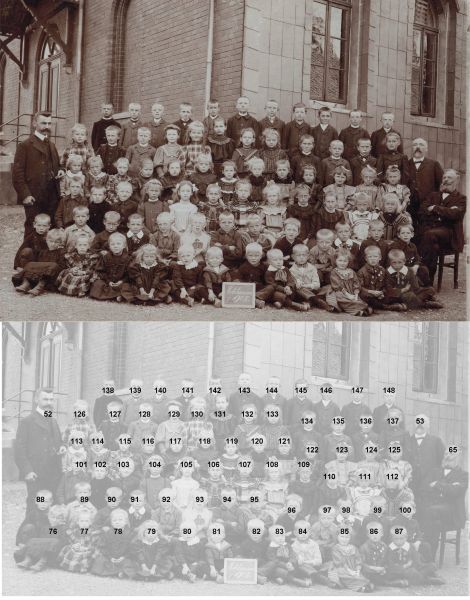 Schüler, deren Geschwister und Lehrer der Holzhäuser Schule 1908 - 2