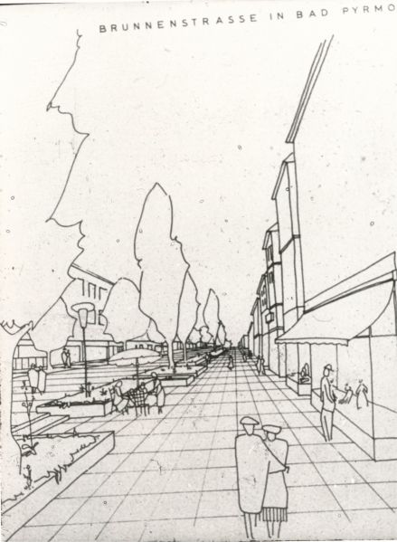 Neugestaltung der Brunnenstraße zur Fußgängerzone (10/1977-04/1978), möglicherweise Entwurf, Quelle: Museum im Schloss