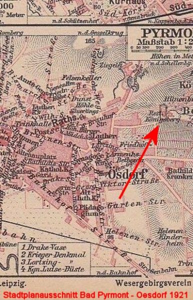 Stadtplanausschnitt Bad Pyrmont mit Hinweis auf Königsberg-Restaurant