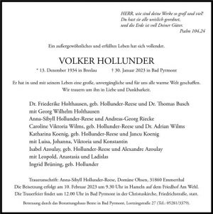 Es hat mich schon sehr berührt, als ich von Volker Hollunders Tod erfuhr. Es gab immer 3 Personen, die ich immer positiv mit meiner Schulzeit verband und die Gespräche mit ihnen genieße, Gerhard Richter, Dr. Dahmann und natürlich Volker.