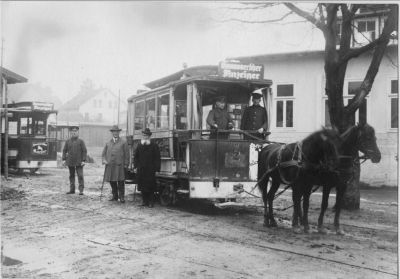 Dieses Bild wurde 1925 von Paul Stecher wahrscheinlich auf dem Waisenhof aufgenommen und zeigt die Pferdebahn Nr.2 mit