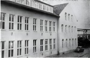 Anhand einiger Skizzen gab er noch einmal einen kurzen Überblick über den Werdegang des Schulgebäudes, in dem sich noch vor vier Jahren nur vier Klassenräume und eine behelfsmäßige Küche befanden. 1953 kamen dann vier weitere Räume, ein Waschraum, Toiletten-Anlagen und ein Werkraum hinzu. Das alte Gebäude wurde bis auf die Grundmauern, die noch zu verwenden waren, abgebrochen und wesentlich erweitert und modernisiert wiederaufgebaut. Der Speiseraum wurde beträchtlich vergrößert, ein neues Treppenhaus entstand und ein Ausgang nach hinten verringert sehr stark die Gefahr von Verkehrsunfällen, die bisher bestand, da die Schüler oft durch die vordere Tür des alten Gebäudes hinausstürzten auf die sehr belebte Grießemer Straße. Ferner wurde in allen Räumen Gasheizung eingebaut. Jetzt umfasst das Schulgebäude zehn Klassenräume und zahlreiche Nebenräume, wie Bücherei, Lehrerzimmer, Bügelzimmer, Lehrmittelzimmer und andere.