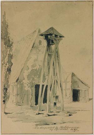 Erstmals erwähnt wurde die acht Zentner schwere Glocke und Glockenturm im Jahr 1824. Standort war der Holzhäuser Gemeindeplatz, heute Glockenschäferweg. Eine Zeichnung des Turms aus dem Jahr 1857 ist im Skizzenbuch von Pieter van Loom zu finden.