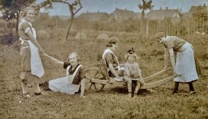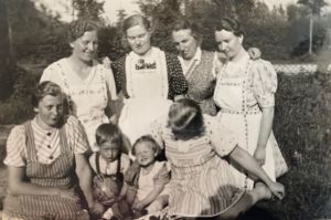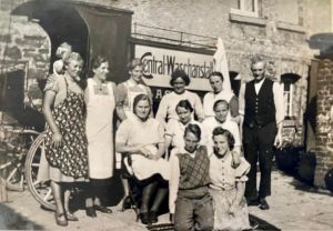 Wäscherei Schaper Mitarbeiterinnen während einer Arbeitspause in den 1930ern. Ganz rechts: Gertrud Boldt geb. Reese