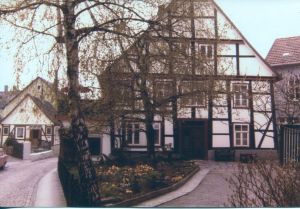 Die Hofanlage Borchardtsweg 5, großes Haus links und kleines Haus Bild Mitte hat die Familie Kleinschmidt vom Hauderer Carl Kriwett ( Großvater von Millionen Heinz ) übernommen. Die alte Oesdorfer Poststelle, Haus gegenüber, gehört dem Kaufmann Hermann Jellinghaus (†1959). Einige werden sich noch an seinen Sohn, den Juwelier Carl Jellinghaus erinnern. Dieser hatte sein Geschäft auf der Schillerstraße, heute Pizzeria Salerno. [3]